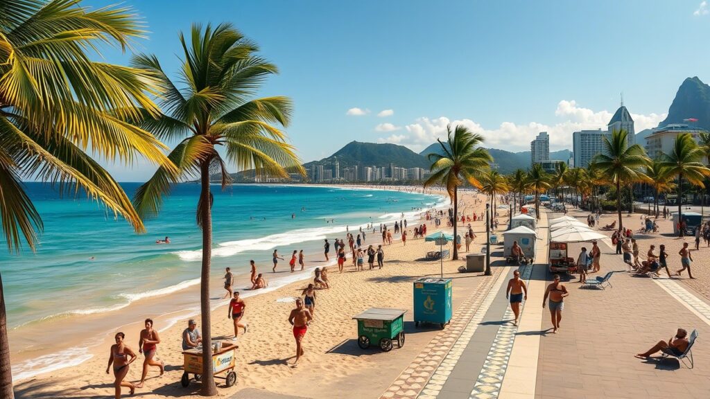 A Praia de Copacabana é um dos cartões-postais mais icônicos do Brasil. Localizada na Zona Sul do Rio de Janeiro, ela é mais do que uma faixa de areia: é símbolo de história, cultura, beleza natural e emoção à flor da pele. Quem pisa ali pela primeira vez sente que entrou num filme — ou num poema escrito à beira-mar.